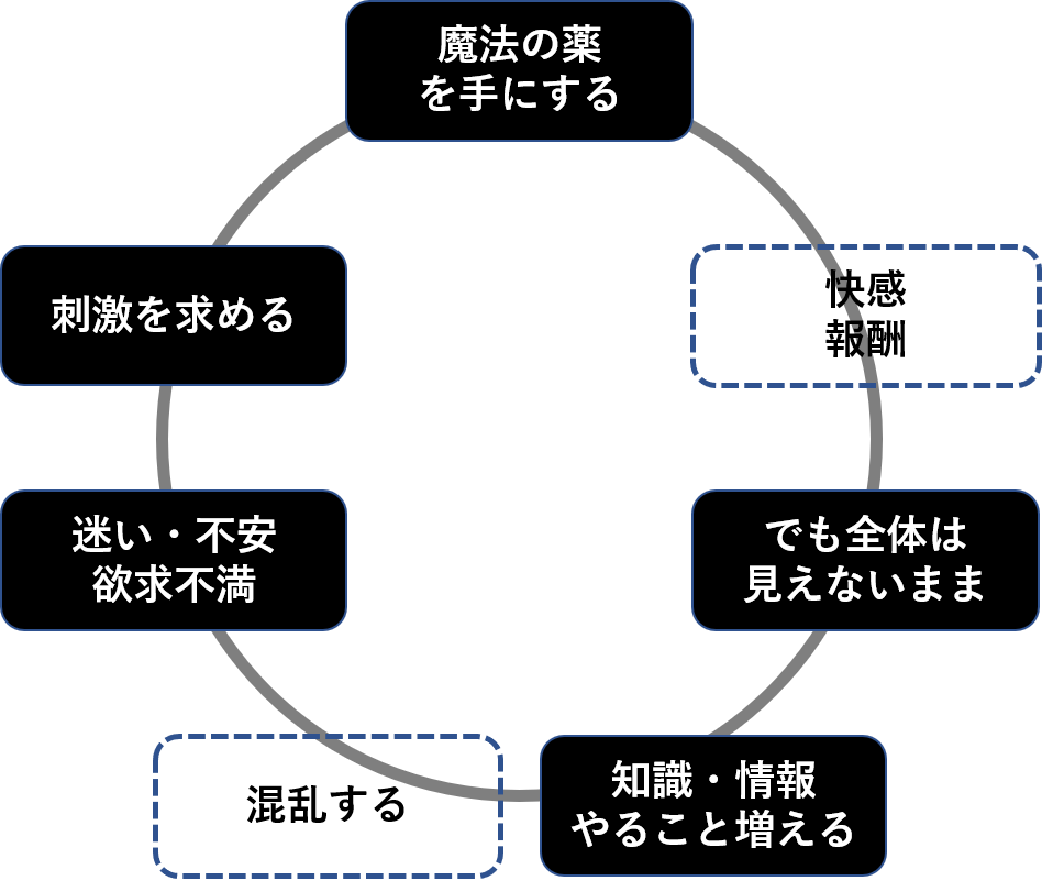 魔法の薬さえ手に入れれば今の問題を何もかも治してくれる、これさえあれば大丈夫と思ってしまう・・・